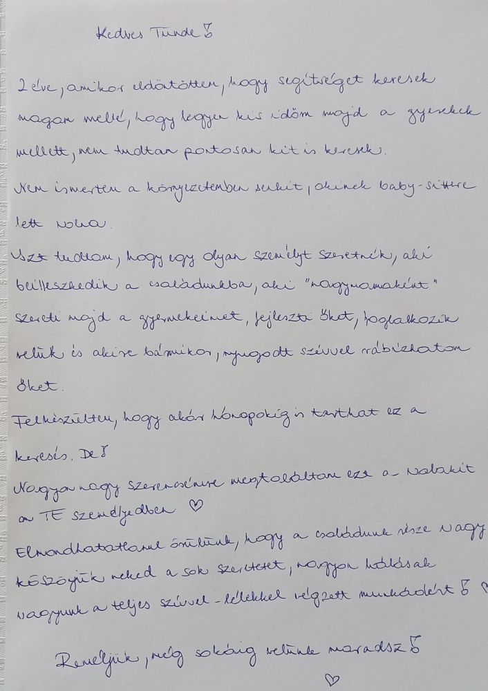 30 éve házasságban élek. 3 éve foglalkozom gyermekfelügyelettel amit 13 évnyi óvodai dajka munka előzött meg. A Covid alatt döntöttem úgy ,h inkább segítek abban a családban ahhol szükség van : Plusz két kézre aki türelmes segítő és szivesen olvas mesét,rajzol,társasozik,játszóterezik,altat,etet,fürdet,pelenkázik.